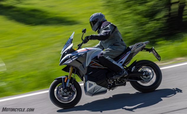 As I said, I knew the Experia was going to be different from all the other Energicas I’d ridden previously in the first 100 feet. Whereas with the previous models, I could never escape the feeling that I was piloting a big, heavy motorcycle, the Experia felt deceptively light. Side-to-side transitions were almost effortless and perfectly suited for the snaking alpine roads selected for the introduction. Changing lines mid-corner was a non-issue. The Experia’s weight does become more apparent during braking, particularly downhill. Still, before people try to bag on it for being heavy, I feel I must note that at 573 lb., it only weighs about 35 lb. more than the Ducati Multistrada V4 S that I spent a week scything through Virginia and North Carolina on in April. On a touring model, that’s almost the same zip code.