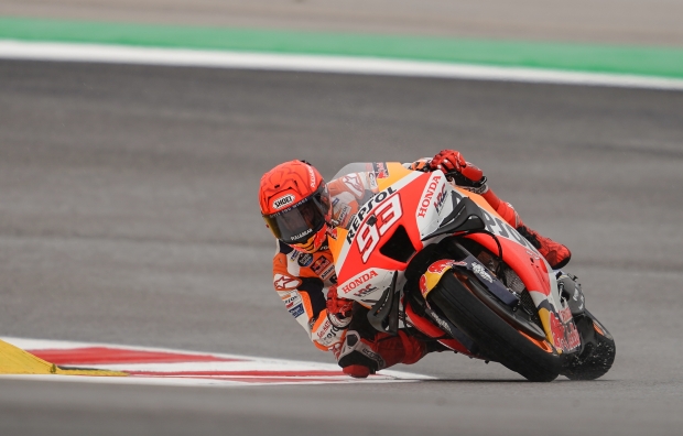 Marc Marquez and Pol Espargaro each topped a Free Practice session on the opening day of running in Portugal, the typical sunshine replaced with rain and gusty winds.